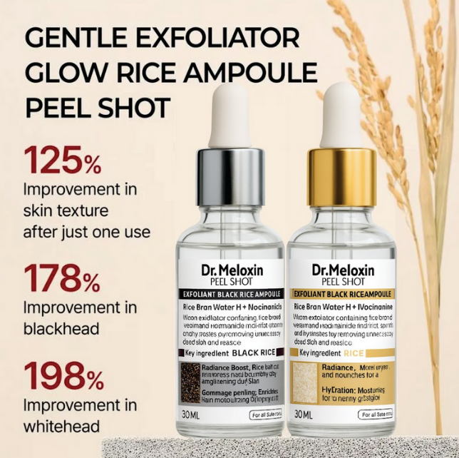Descubre el poder del arroz fermentado con la Ampolla Dr. Melaxin Rice & Black Rice, un suero concentrado que combina la sabiduría ancestral del arroz blanco y negro con la innovación cosmética moderna. Su fórmula rica en antioxidantes, aminoácidos y vitaminas restaura la barrera cutánea, hidrata intensamente y devuelve a tu piel una apariencia radiante y uniforme.
